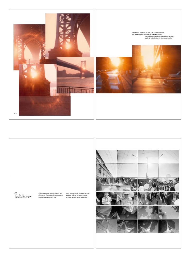 The source material for the Sample Cities book and the two Hidden cities (2012) and Potential Space(2014) films are sequential photo works depicting essential situations of urban experiences revealing human and inhuman acts in a compact form. The cities in which the photos were created between 1974 and 2013 include Berlin, Budapest and New York – places with a traumatized past: wars, dictatorships, terrorist catastrophes. Each individual photographic sequence already contains a concept, an order, a program within it; they are scores, notations of time and space, in other words, to temporal-spatial or spatiotemporal sequences which become experiments in perception in a cinematographic context.